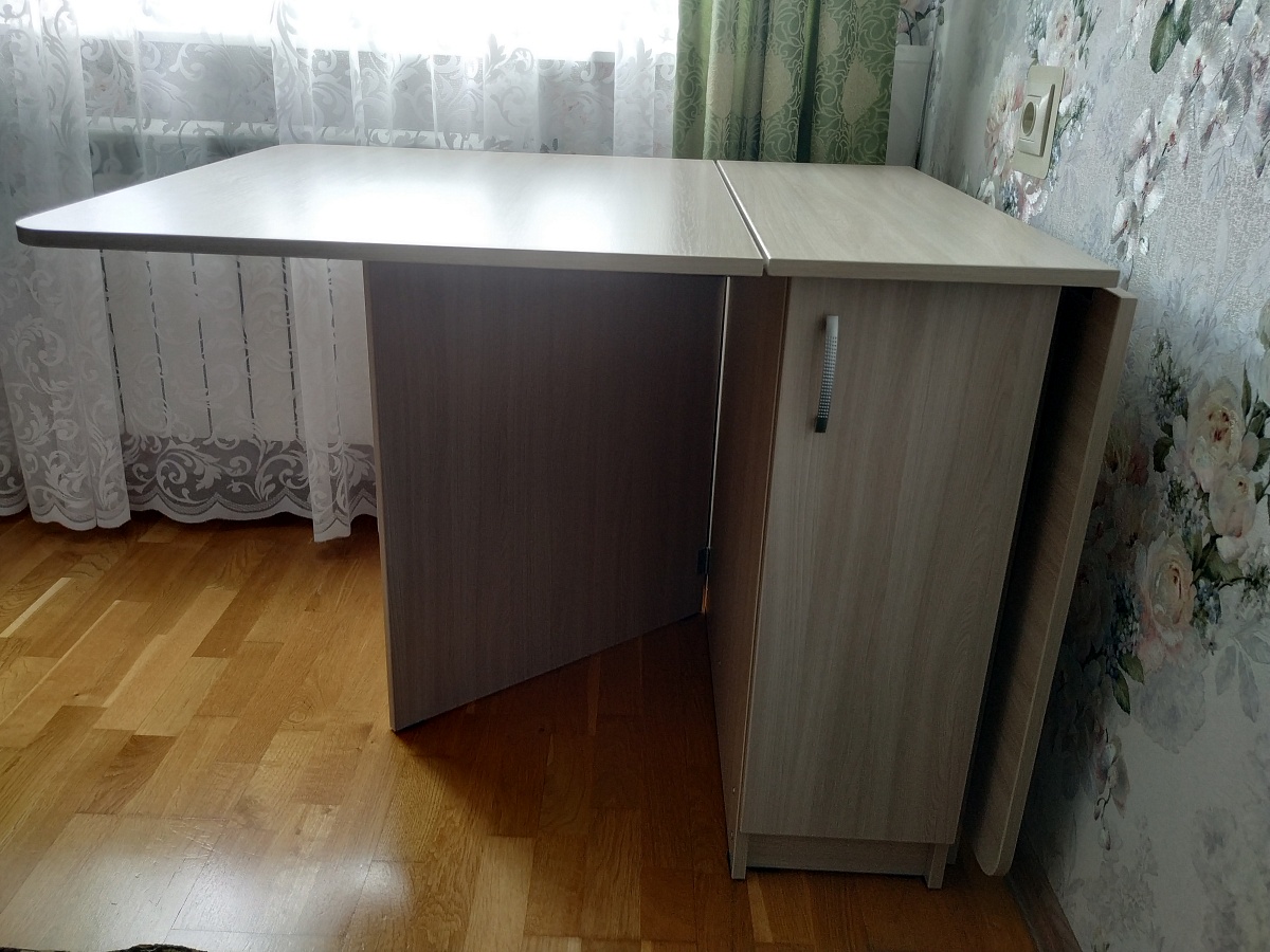 Купила такой стол в стандартном размере, кромка по лицевым деталям, стандартный крепёж, петли с доводчиком в бесплатном цвете ясень Шимо светлый . Очень хорошо сделано, качество меня устроило. Только одно расстроило, нет подробной инструкции по сборке, так как собирали сами. Просьба к производителю : прикладывать к товару подробную инструкцию по сборке, та что была к сожалению мало информативна.