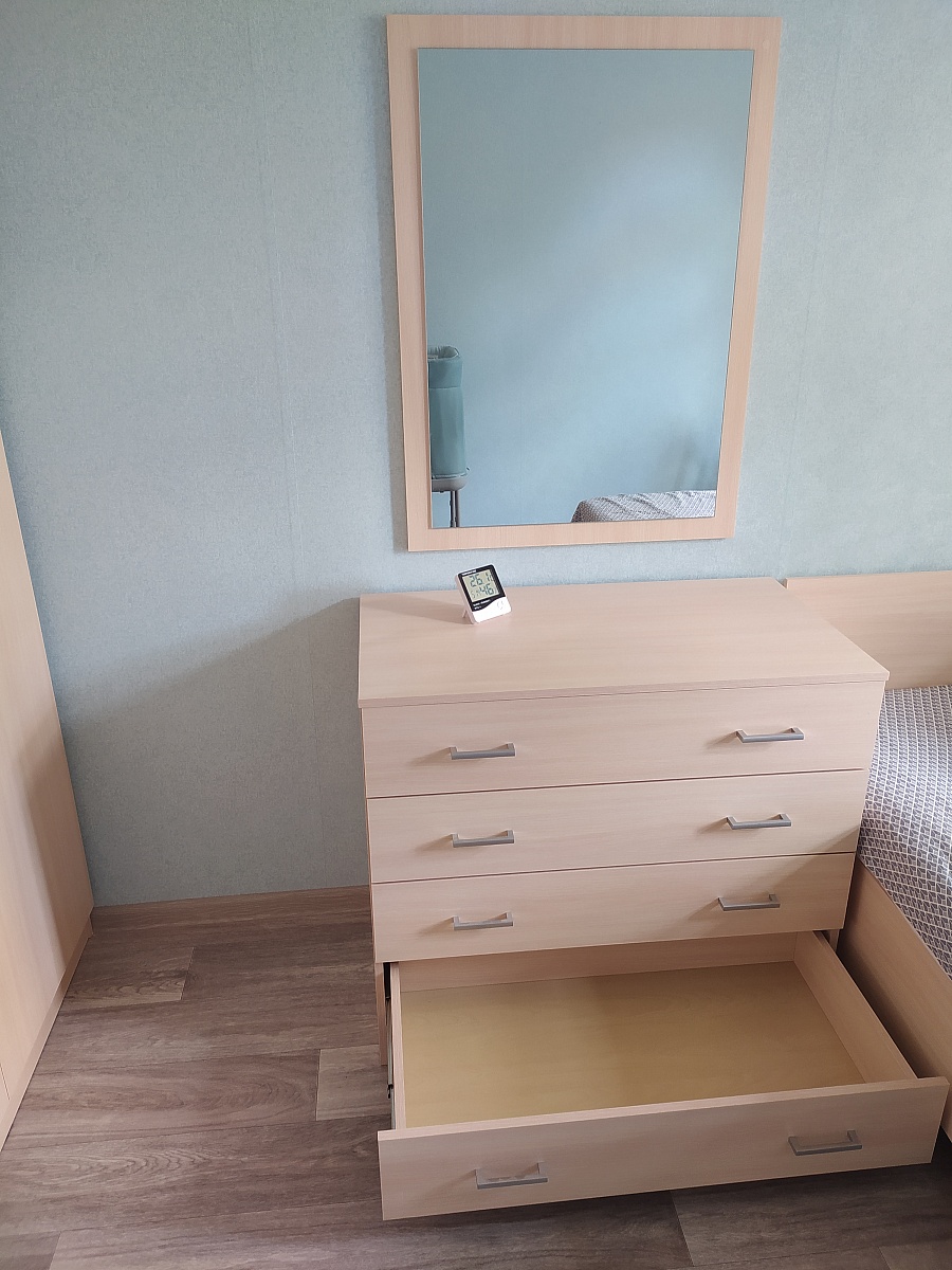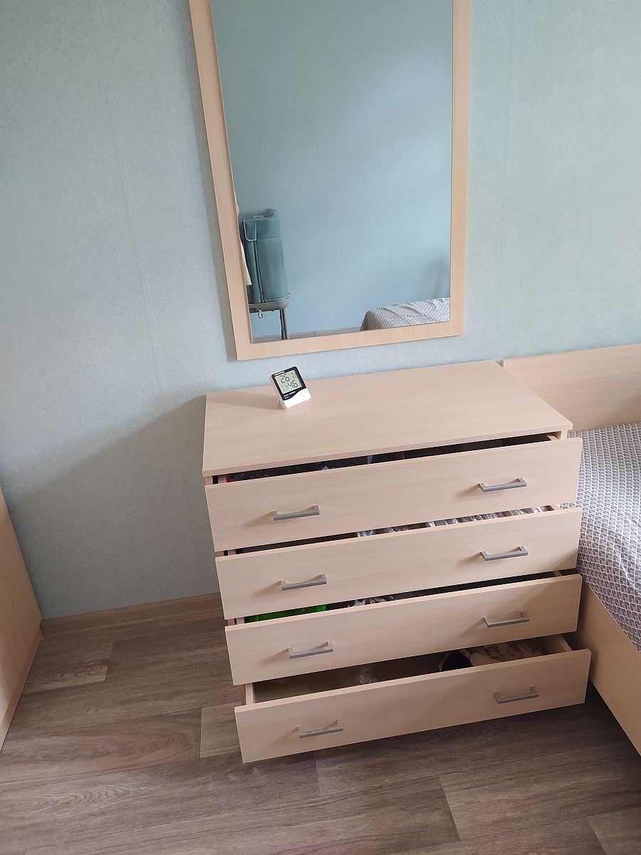 Заказывали в составе спального гарнитура Комод Танго BMS (900х1750х500) Заказ №1131054. Комодом очень довольны, как и всем гарнитуром в целом. Выбирали простой дизайн, цвет молочный дуб. Хотелось светлую мебель, так как от предыдущей темной глаз устал. Комод очень красивый, функциональный, вместительный, ящики выдвигаются легко, бесшумно, зеркало большое. На всех этапах сотрудники магазина помогали. Изготовление, доставка, сборка очень быстрые и качественные. Спасибо магазину! Будем еще здесь что-нибудь прикупать