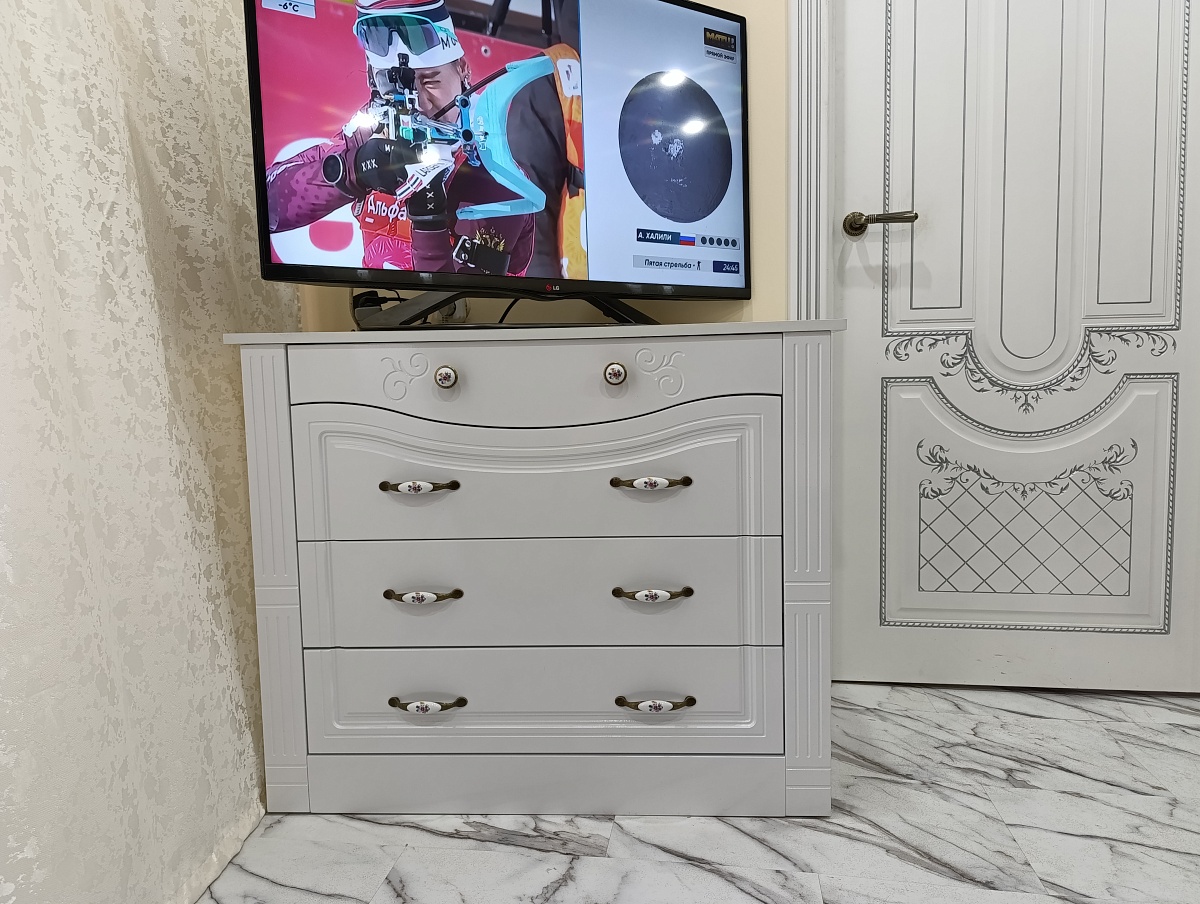 Комод с 4-мя ящиками Ева-10 BMS белый глянецЗаказал комод на сайте simferopol.bestmebelshop.ru. Заказ 00000923209, изделие Комод с 4-мя ящиками Ева-10 BMS (940х768х475) белый глянец. Комод изготовили за 2 недели, доставили быстро, в удобное для меня время. Изделие полностью соответствует заявленным характеристикам, главное что прилагалась схема по сборке комода. Заказал специалиста по сборке мебели, который собрал мебель за час. Дизайн комода, цвет белый глянец, глубокие ящики с доводчиками все очень понравилось. Комод очень удобный для хранения вещей. Большое спасибо компании производителю мебели.